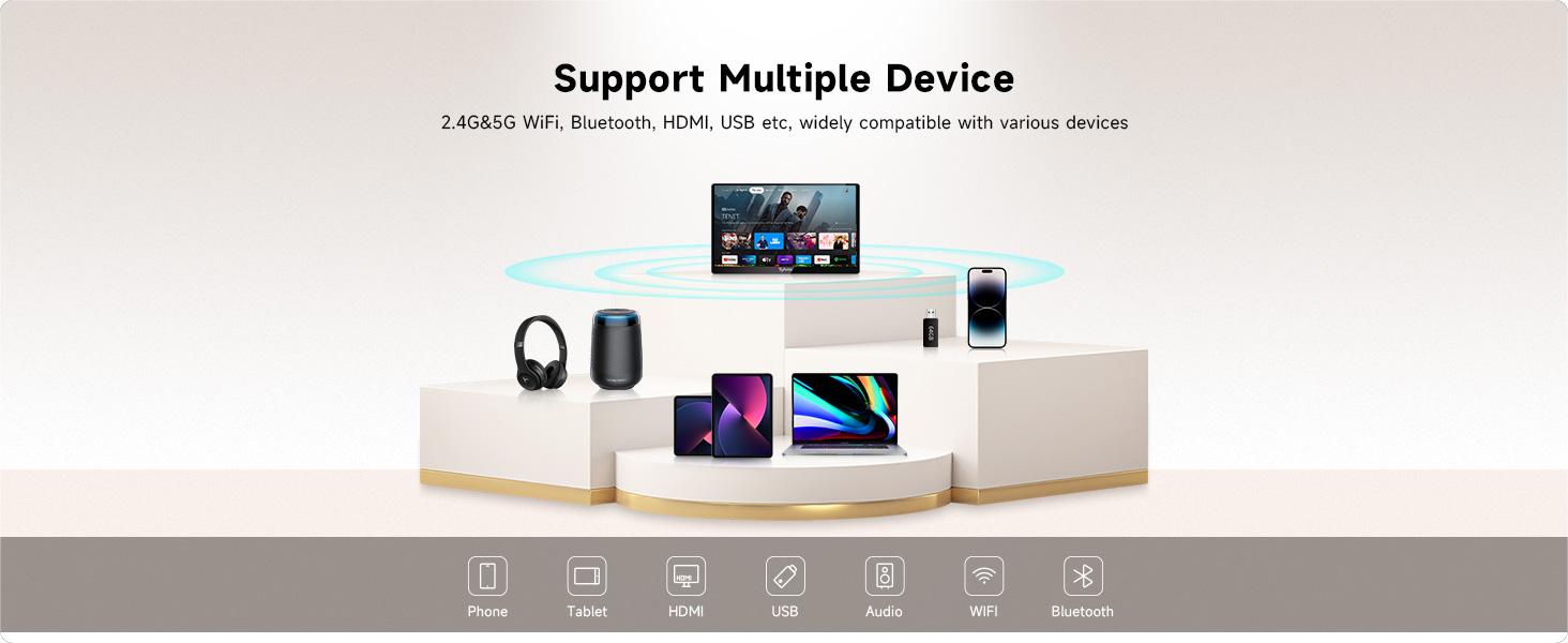 With WIFI and Bluetooth, allows you to play content from countless devices(Iphone, Ipad, Android device)