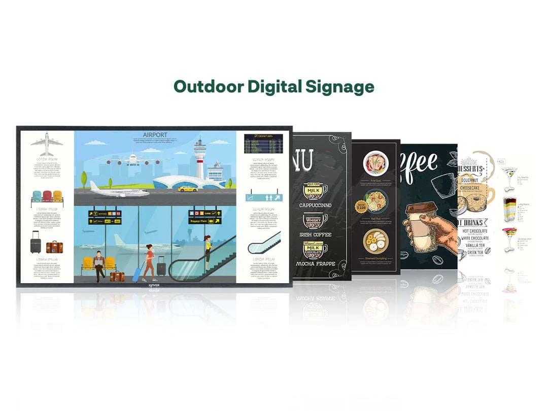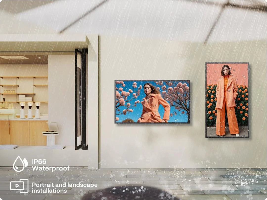 This IP66 waterproof display works in both landscape and portrait modes, perfect for all weather conditions and outdoor commercial use.