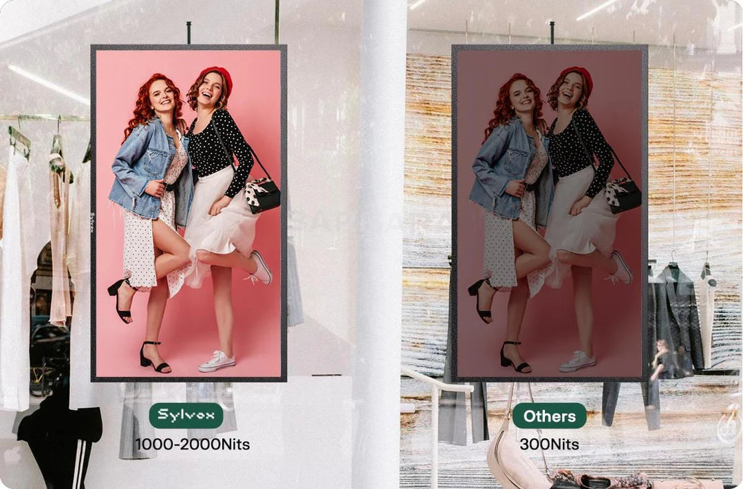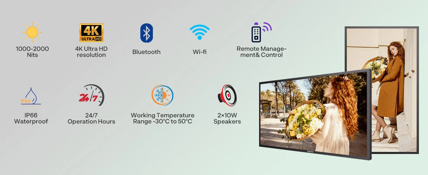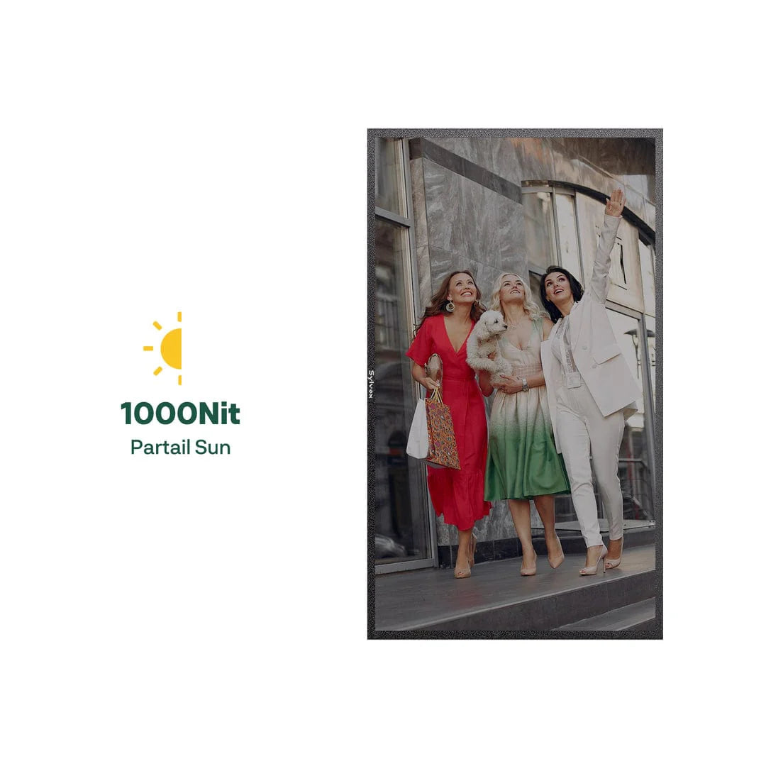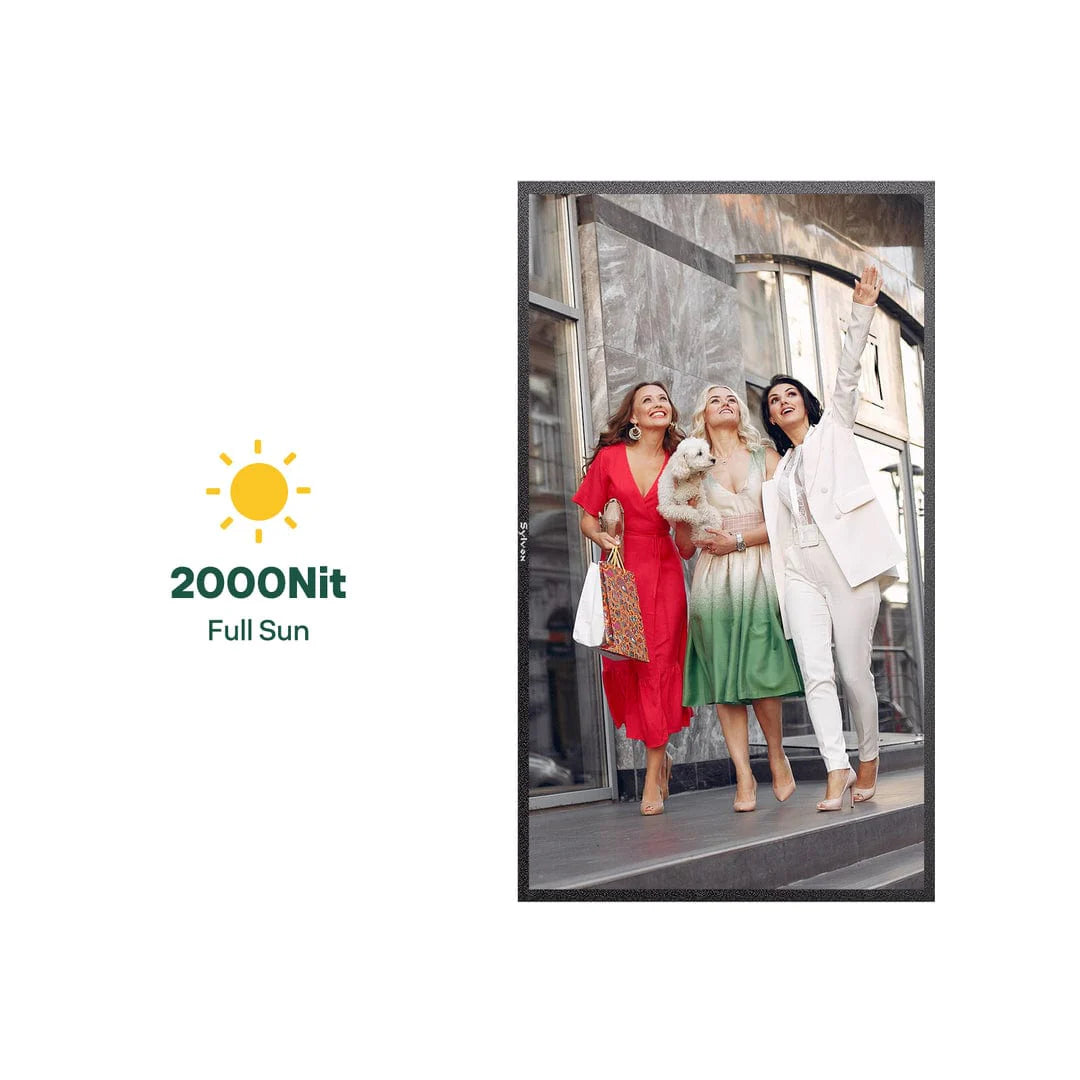 • Ultra-bright panel — 3–6× brighter than standard TVs, ensuring visibility even in direct sunlight.