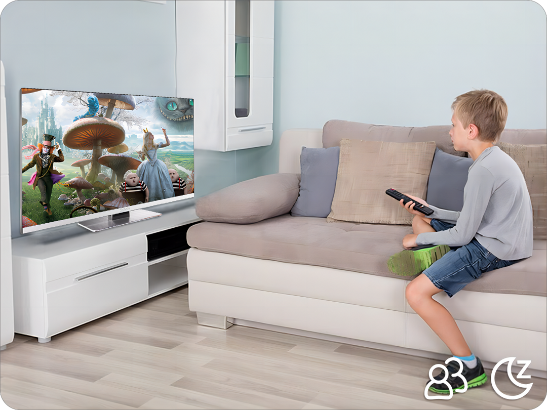 This TV has a sleep timer setting and parental control age restriction so that the time children watch TV can be controlled and electricity is saved.