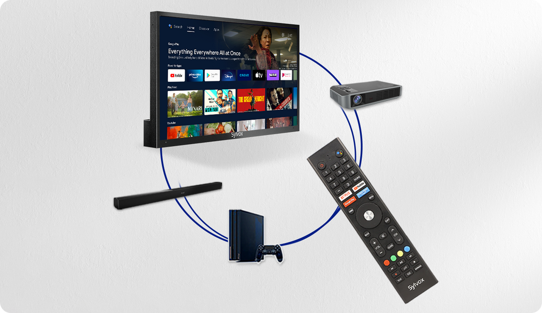 Easily connect your smartphone, headphones, or external speaker to your Sylvox outdoor TV.
