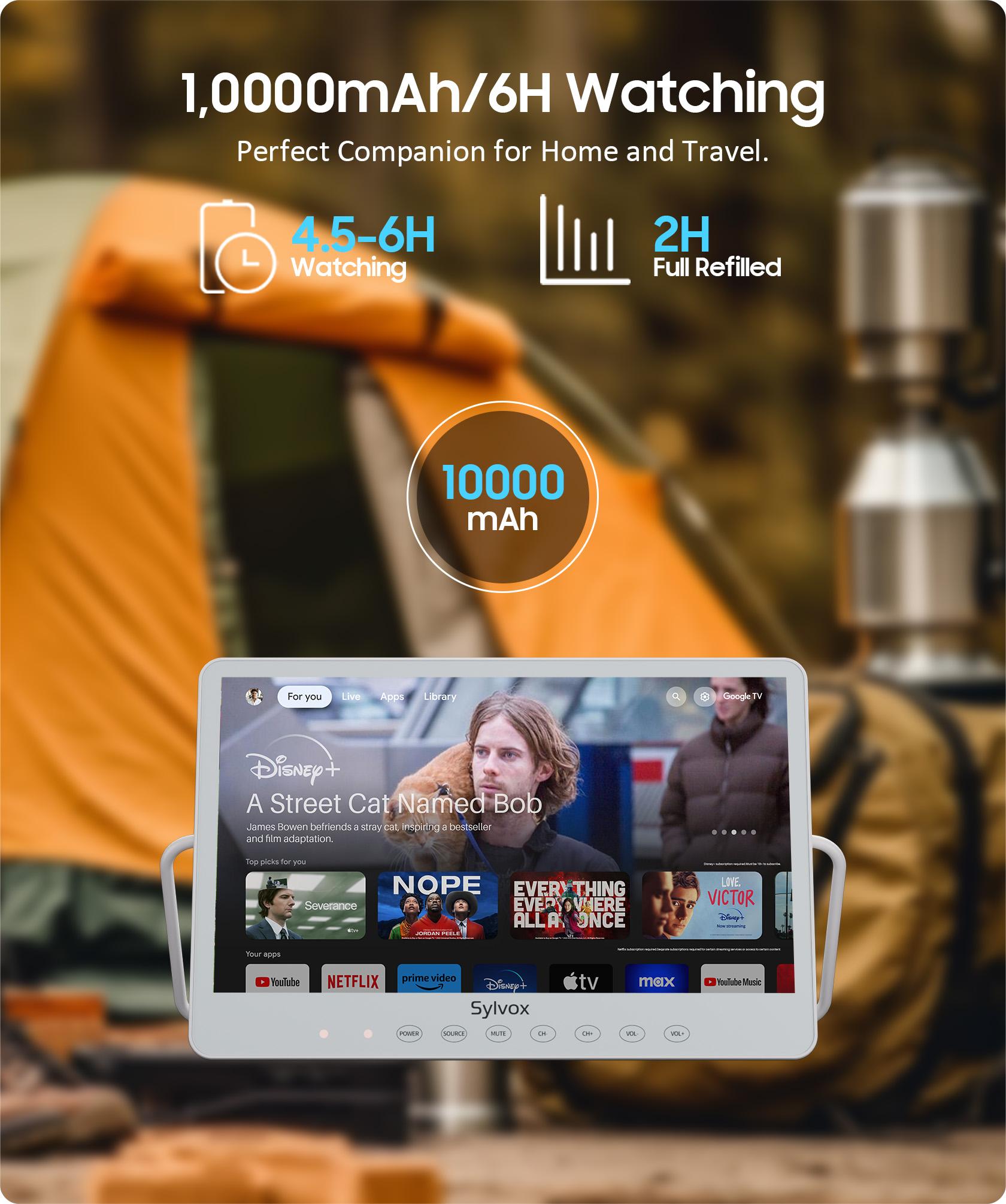 Sylvox portable TV offers 4.5-6 hours of playback time on a full charge after a 2-hour charging period